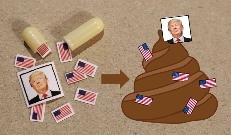 Feel Trump from the Inside. With just one pill, become a “shitty” DIY artist and have the joy of feeling Trump go through your anus!
